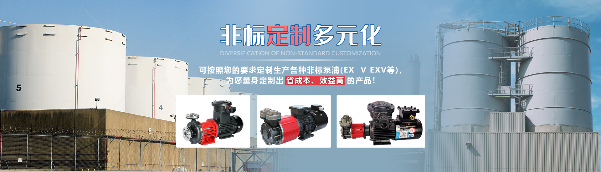 可根據(jù)您的工藝需求定制特殊電壓(V)、頻率(HZ)、防爆(EX)、防爆(EX)+變頻(V)等特殊產(chǎn)品,批量個性化定制開發(fā)等,給您提升效率,降低成本。不斷追求技術(shù)創(chuàng)新、得到更多企業(yè)認(rèn)可。公司產(chǎn)品包括旋渦磁力泵、輕型離心磁力泵、化工離心磁力泵、襯氟磁力泵、精密旋渦泵、大流量離心泵、小型高壓葉片泵、不銹鋼多級泵、立式管道泵等;產(chǎn)品耐溫范圍從低溫-196℃到高溫+400℃,涉及化工、環(huán)保、印染、醫(yī)藥、半導(dǎo)體、新能源、汽車、電子、軍工、食品、石油和通用機(jī)械等行業(yè)領(lǐng)域。